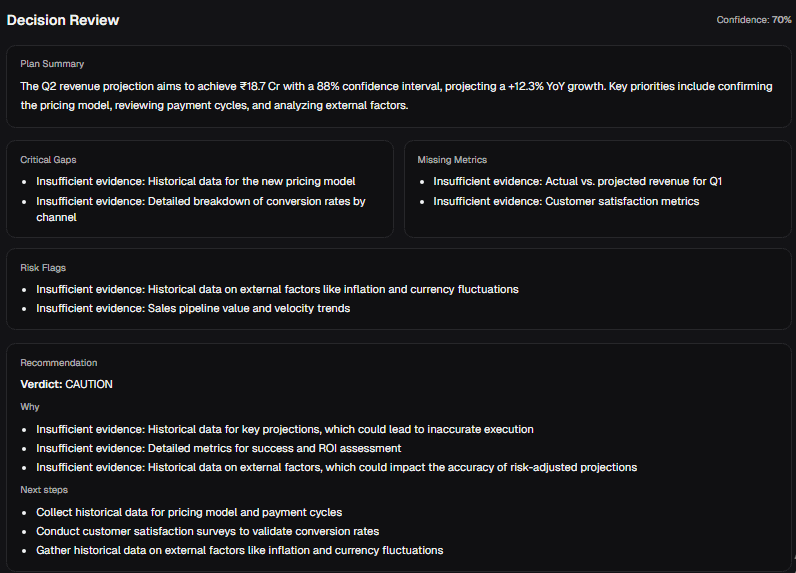 Every recommendation is backed by business logic, not hallucination. Confidence scores on every output
